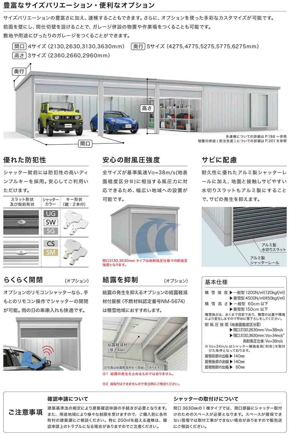 ガレーディア ガレージ GRN-2662SL 3台以上収納タイプ スタンダード 追加棟(2棟目以降) 豪雪型 幅2630×奥行6275×高さ2360
