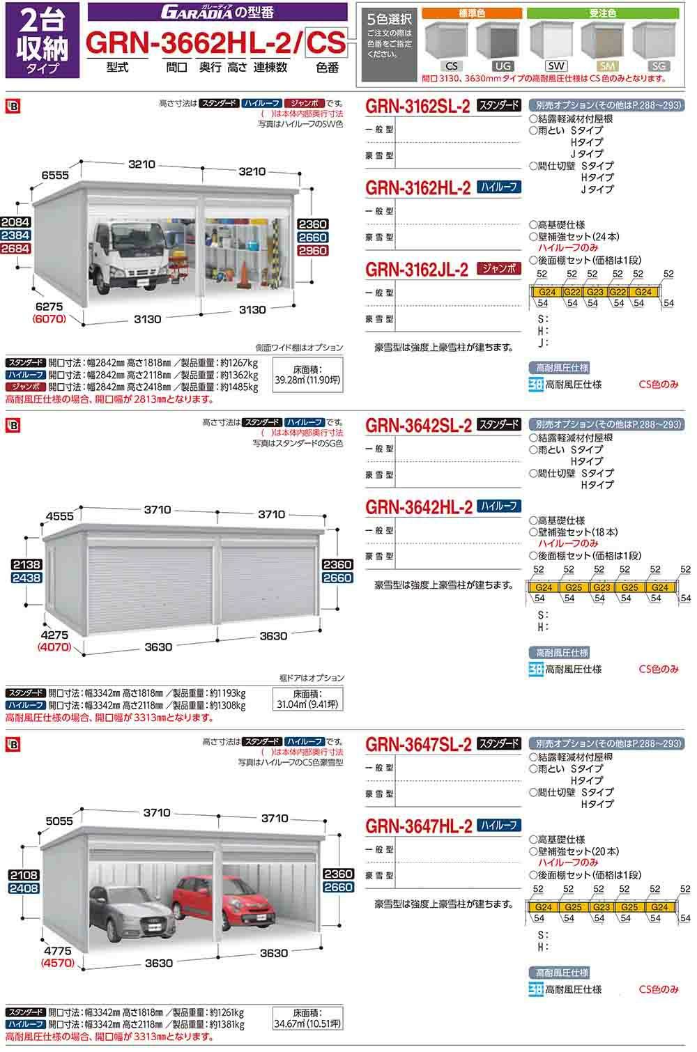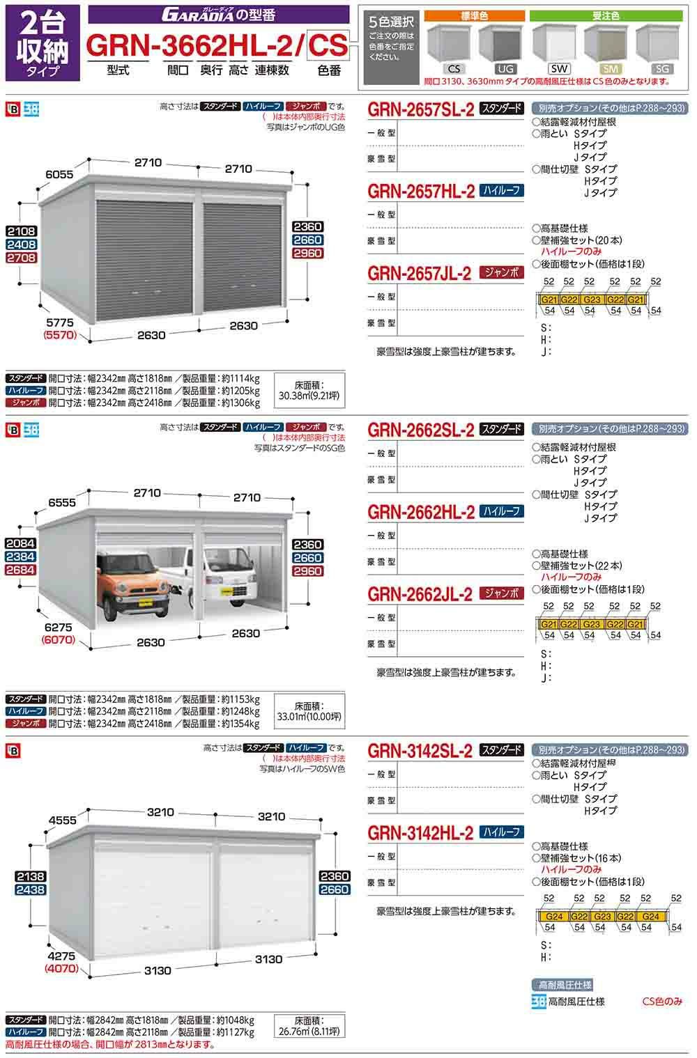 ガレーディア ガレージ GRN-2662JL-2 2台収納タイプ ジャンボ 豪雪型 幅5260×奥行6275×高さ2960