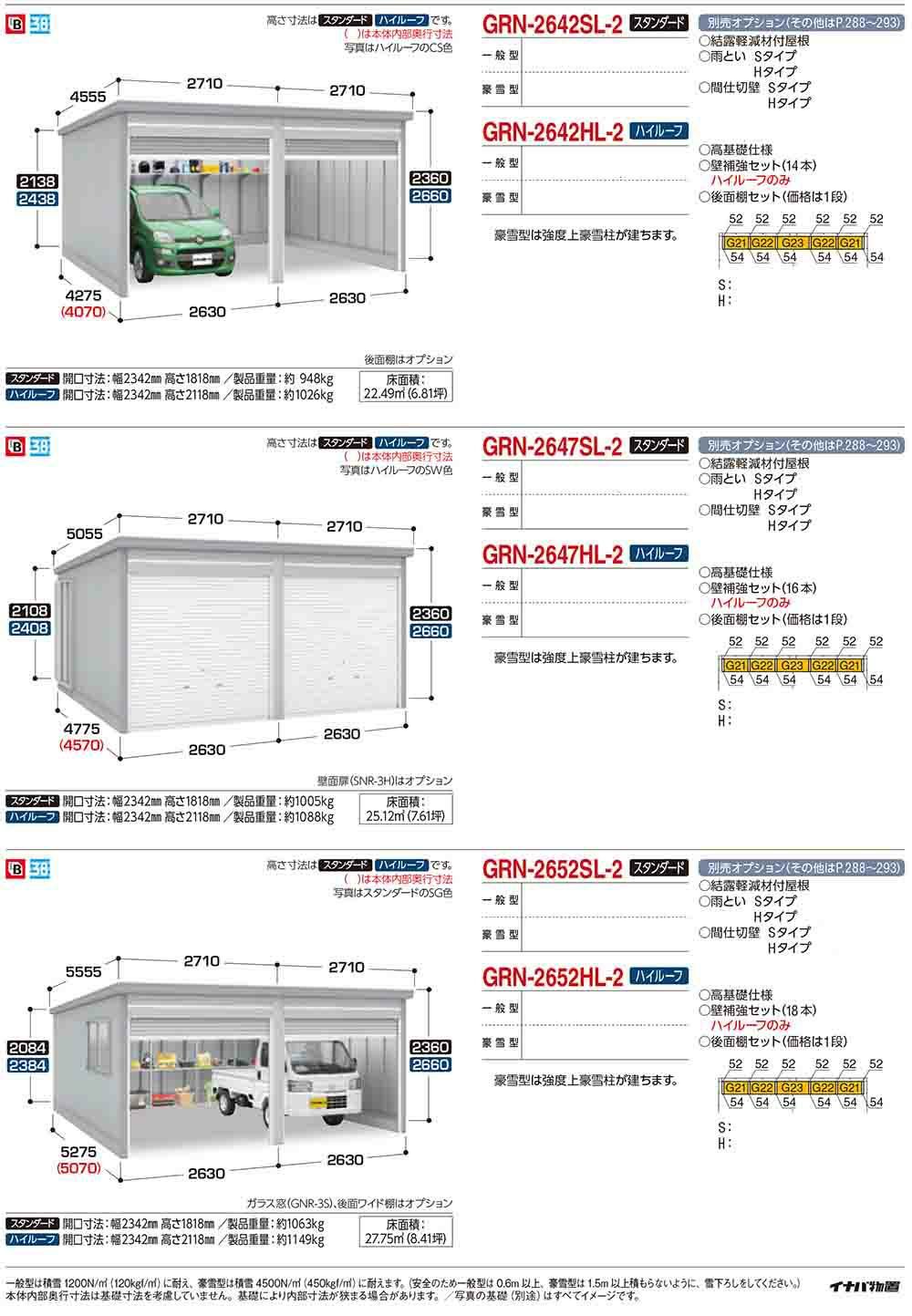 ガレーディア ガレージ GRN-2647SL 3台以上収納タイプ スタンダード 追加棟(2棟目以降) 豪雪型 幅2630×奥行4775×高さ2360