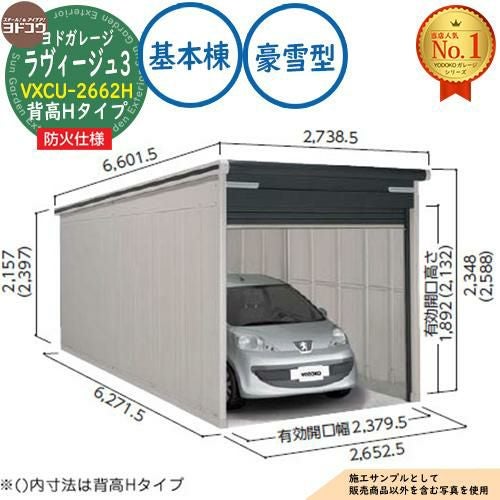 ヨドガレージ ラヴィージュ3 防火仕様 VXCU-2662H シャッタータイプ 背高Hタイプ 基本棟 豪雪型 間口2652×奥行6271×高さ2589