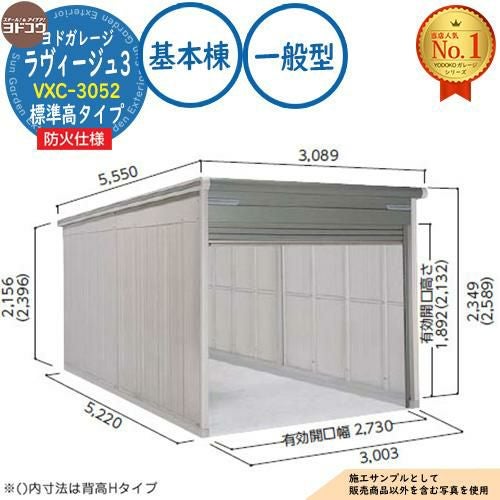 ヨドガレージ ラヴィージュ3 防火仕様 VXC-3052 シャッタータイプ 標準高タイプ 基本棟 一般型 間口3003×奥行5220×高さ2349