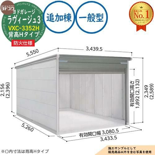 車庫 シャッター ガレージ ヨドガレージ ラヴィージュ3 防火仕様 VXC-3352H シャッタータイプ 背高Hタイプ 追加棟 一般型 間口3433.5×奥行5260×高さ2589