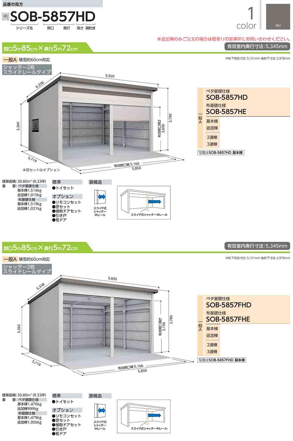 車庫 シャッター ガレージ ヨド倉庫 SOB-5857LE 布基礎仕様 追加棟 一般A 間口5850×奥行5719×高さ2780