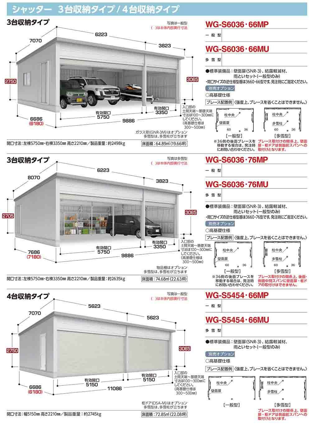 ガレーディア ガレージ GRN-3162SL 3台以上収納タイプ スタンダード 追加棟(2棟目以降) 豪雪型 幅3130×奥行6275×高さ2360