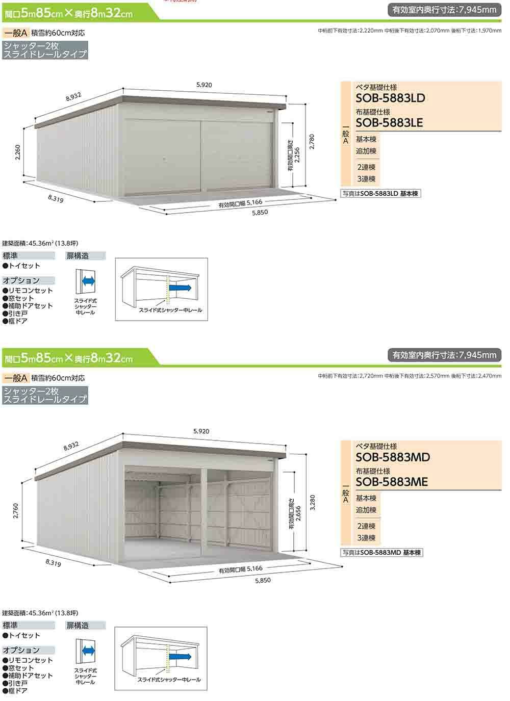 ヨド倉庫 SOB-5883ME 布基礎仕様 追加棟 一般A 間口5850×奥行8319×高さ3280