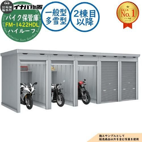 物置 屋外 収納 バイク保管庫 バイクガレージ FM-1422HDL 連続型(2棟目以降) 土間タイプ ハイルーフ 一般型・多雪型 間口1370×奥行2210×高さ2385