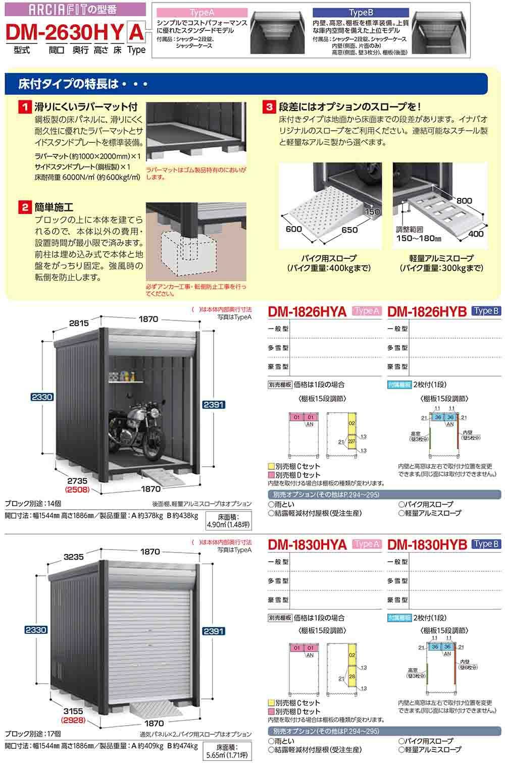 アルシアフィット バイクガレージ DM-1826HYA 床付タイプ TypeA 多雪型 幅1870×奥行2735×高さ2391