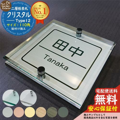 二層板表札 クリスタル Type12:2点ビス仕様【サイズ:110×110mm】