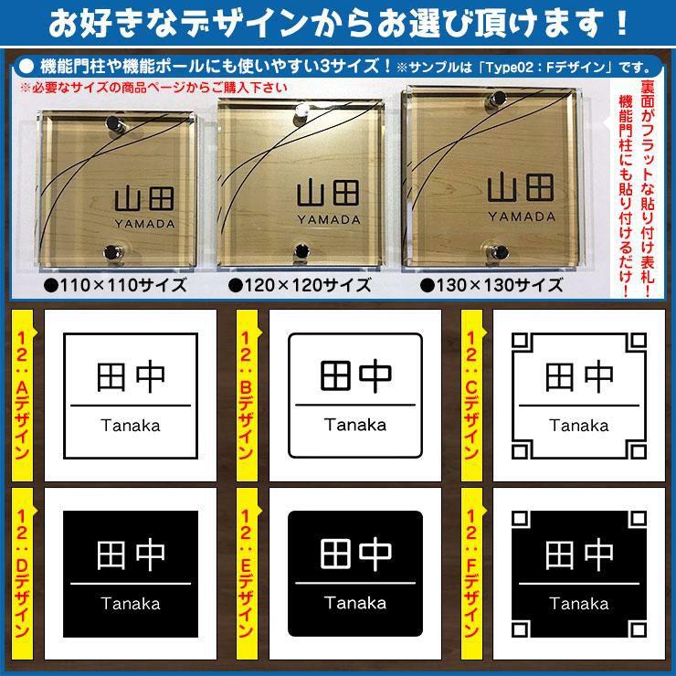 二層板表札 クリスタル Type12:2点ビス仕様【サイズ:120×120mm】