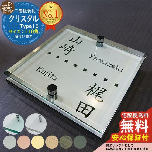 二層板表札 クリスタル Type16:2点ビス仕様【サイズ:110×110mm】