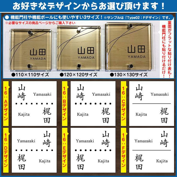 二層板表札 クリスタル Type16:2点ビス仕様【サイズ:120×120mm】