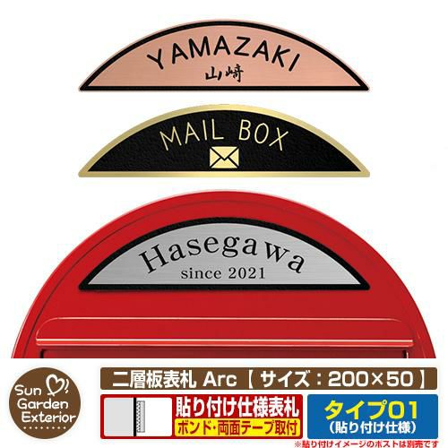 二層板表札 アークは、平らな面ならどこでも使える、貼るだけカンタン取り付けが可能な便利な表札です。