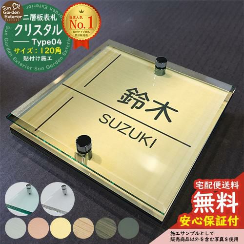 二層板表札 クリスタル Type04:2点ビス仕様【サイズ:120×120mm】