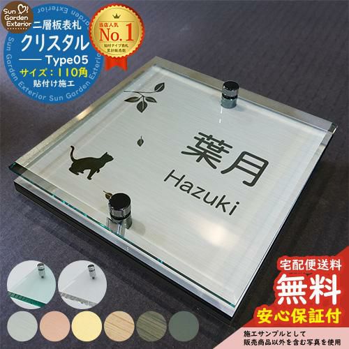 二層板表札 クリスタル Type05:2点ビス仕様【サイズ:110×110mm】