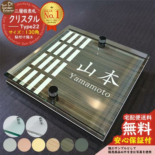 二層板表札 クリスタル Type22:2点ビス仕様【サイズ:130×130mm】