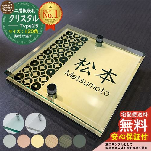 二層板表札 クリスタル Type25:2点ビス仕様【サイズ:120×120mm】