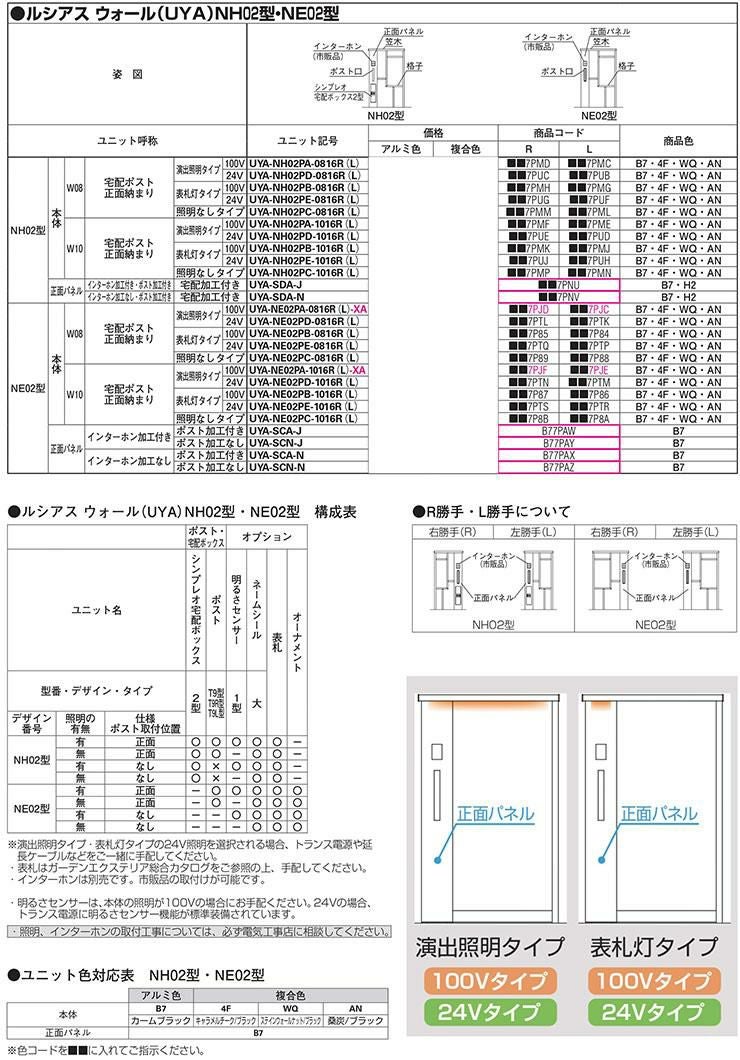 機能門柱 ルシアスウォール HH02型 W08 演出照明タイプ(100V照明)