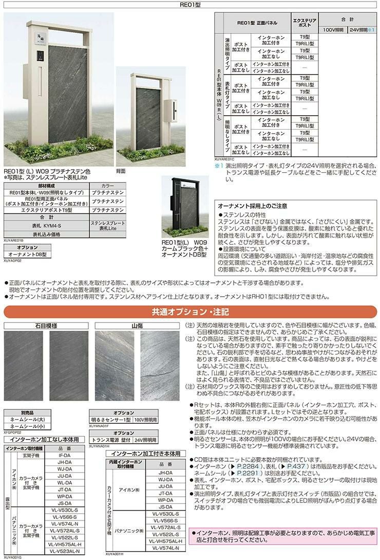機能門柱 ルシアスウォール RE01型 W09 表札灯タイプ(100V照明)