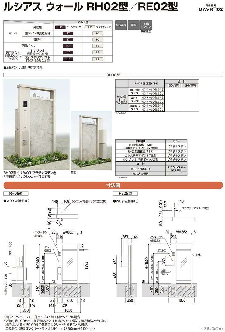 機能門柱 ルシアスウォール RH02型 W09 表札灯タイプ(100V照明)