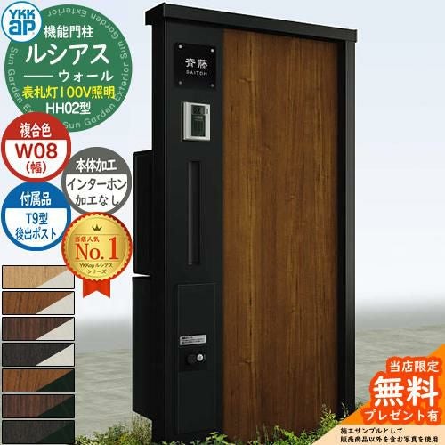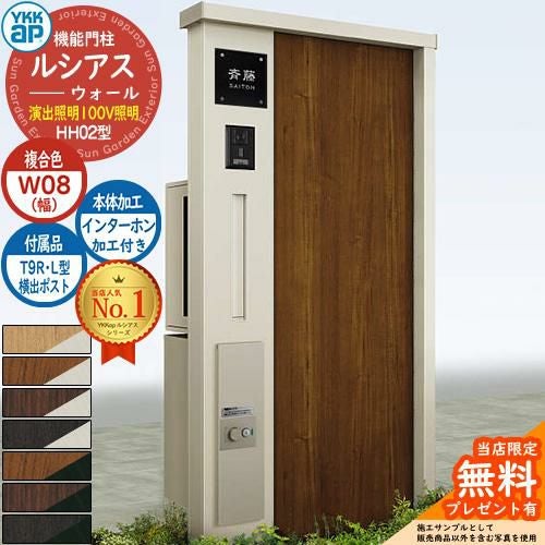 機能門柱 ルシアスウォール HH02型 W08 表札灯タイプ(100V照明)
