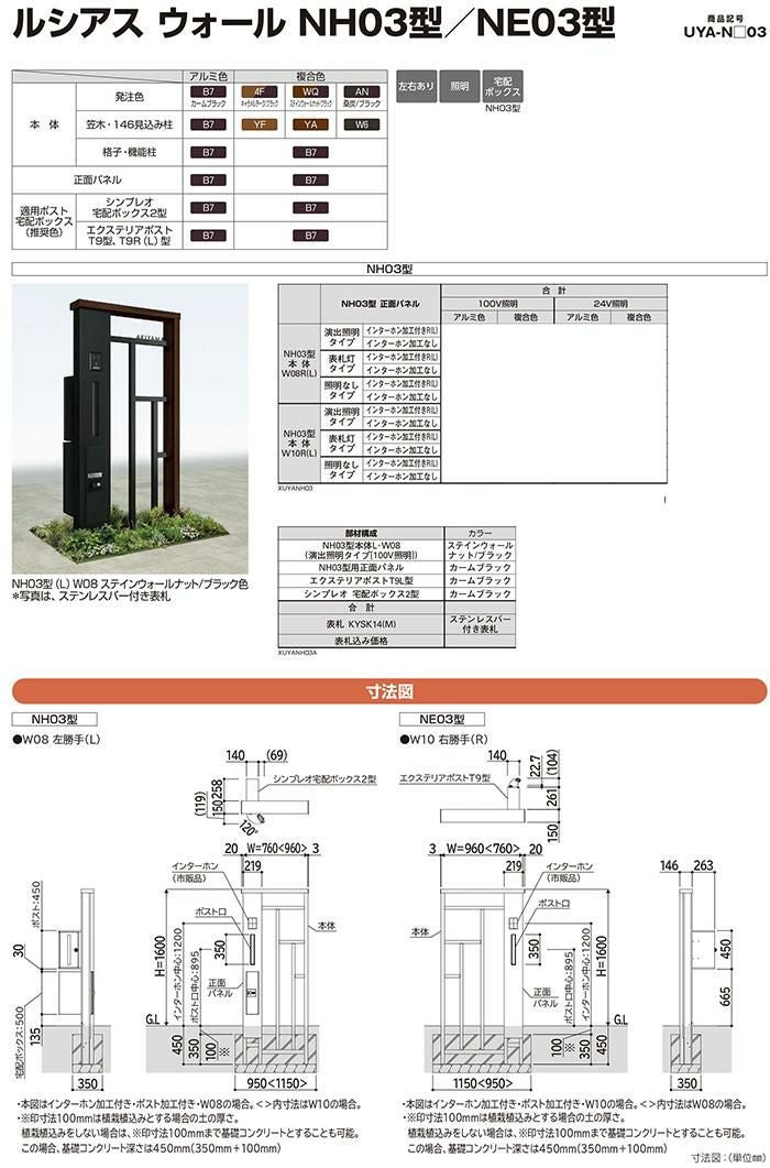 機能門柱 ルシアスウォール NE03型 W08 演出照明タイプ(100V照明)