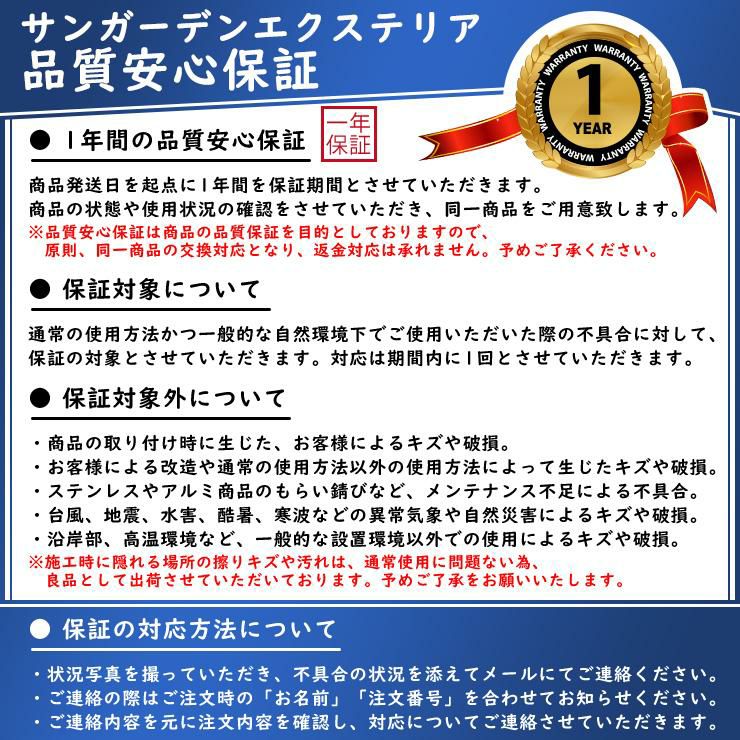 【賢くおしゃれなエクステリア】半額以下も!アウトレット&セールでお得にDIY!掘り出し物満載高品質なエクステリア商品をお手頃価格で手に入れたいなら、当ショップのアウトレット&セールコーナーをぜひチェックください!展示品、撮影使用品、型落ち品など、中には半額以下の超特価アイテムも多数!ワンランク上のおしゃれなエクステリアを、賢く、そしてお得に実現する絶好のチャンスです。DIY派の方にも最適な、低価格で個性的なエクステリアを創り出すための掘り出し物も満載です。「とにかく低価格でエクステリアを揃えたい」というお客様にもご満足いただけるよう、DIYに最適なアウトレット商品を豊富にご用意。ご自身のアイデアと当ショップのお得な商品を組み合わせれば、予算を大幅に抑えながらも、理想のエクステリア空間を創造できます。初心者の方でも気軽に挑戦できるアイテムが満載です。当ショップのアウトレット&セールコーナーでは、他店ではなかなか見つからないような、掘り出し物や一点限りの商品も多数ございます。驚きの価格で、欲しかったエクステリアアイテムが見つかるかもしれません。定期的に商品を更新しておりますので、こまめにチェックして、お見逃しのないようにお願いいたします。早い者勝ちの人気商品も多数ございますので、気になる商品があればお早めにご検討ください。ポスト、フェンス、ガーデンライト、ウッドデッキ材など、エクステリアに必要な様々なアイテムが、信じられないようなお得な価格で手に入るチャンスです。展示品ならではのわずかな傷や汚れがある場合がございますが、品質には問題ございません。詳細な商品の状態については、各商品ページにてご確認ください。賢くおしゃれなエクステリアを実現したい皆様のDIYを応援いたします!ぜひ当ショップのアウトレット&セールコーナーで、お気に入りのお得なエクステリア商品を見つけてください。予算内で理想のエクステリア空間を叶えるお手伝いをさせていただきます。