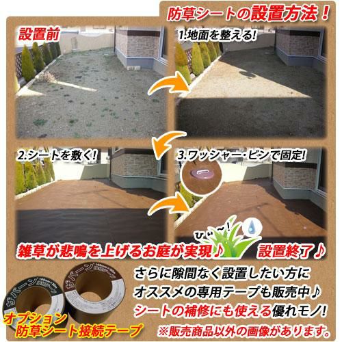 備考・注意 ※防草シートのみの販売です。しっかりと固定したい場合、ピン・ワッシャーを別途ご用意ください。