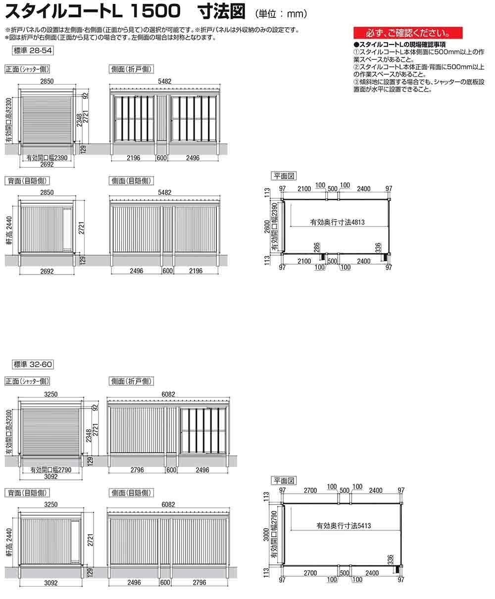 スタイルコートL 32-60 耐積雪タイプ:1500 シングルシャッター仕様 面材機能:標準(換気扇なし・目隠し・目隠し)
