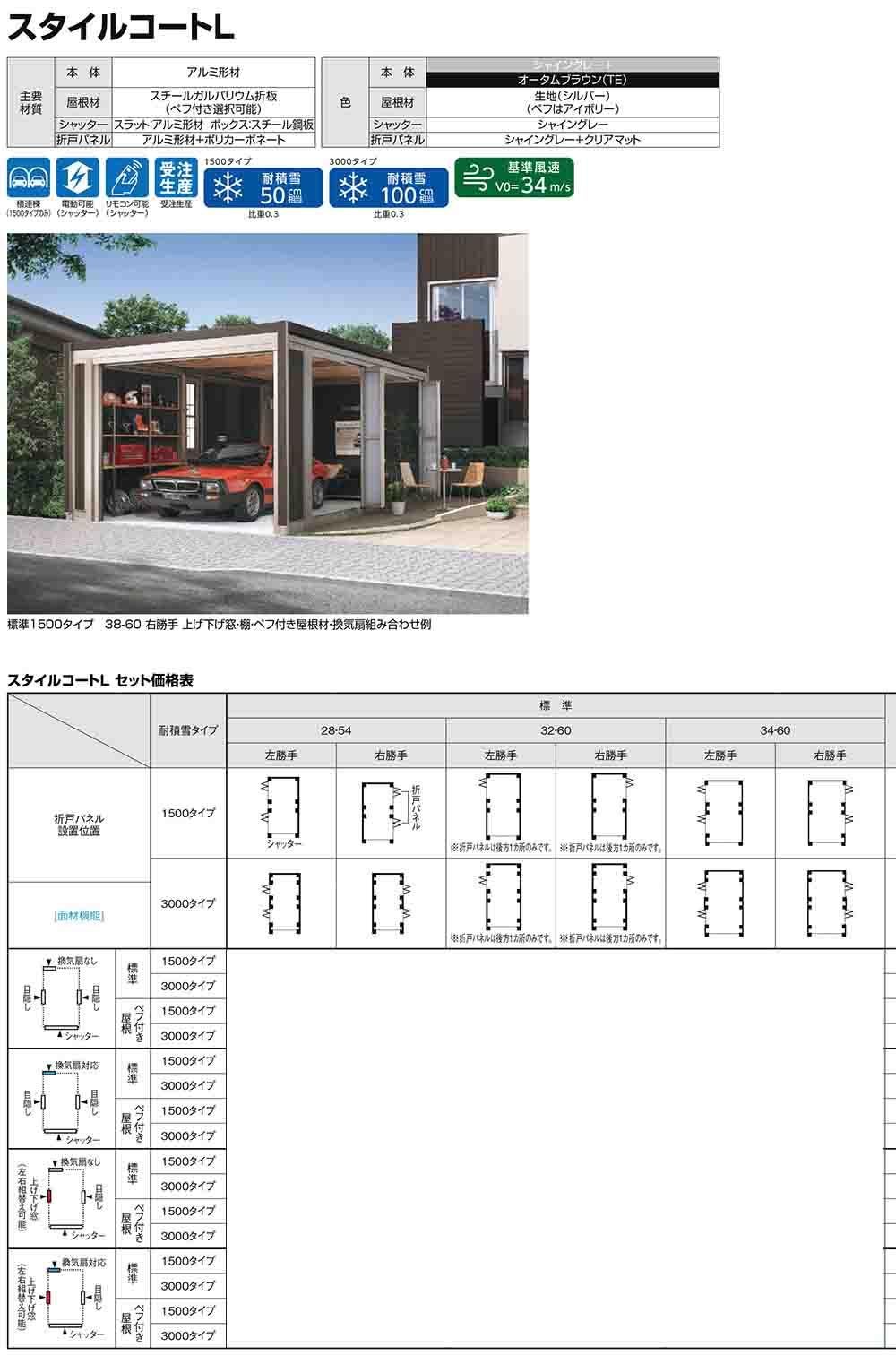 スタイルコートL 34-60 耐積雪タイプ:1500 シングルシャッター仕様 面材機能:標準(換気扇なし・目隠し・目隠し)