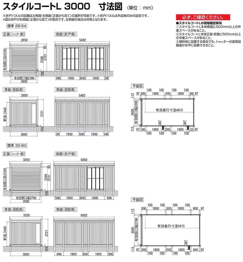 スタイルコートL 32-60 耐積雪タイプ:3000 シングルシャッター仕様 面材機能:標準(換気扇なし・目隠し・目隠し)