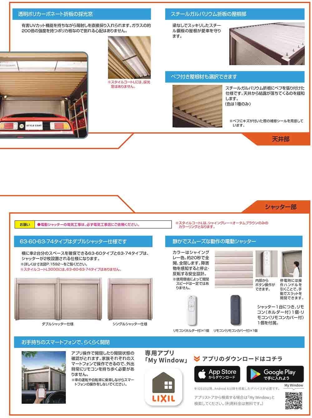 スタイルコートL 63-74 耐積雪タイプ:1500 ダブルシャッター仕様 面材機能:ぺフ付き屋根(換気扇対応・上げ下げ窓・目隠し)