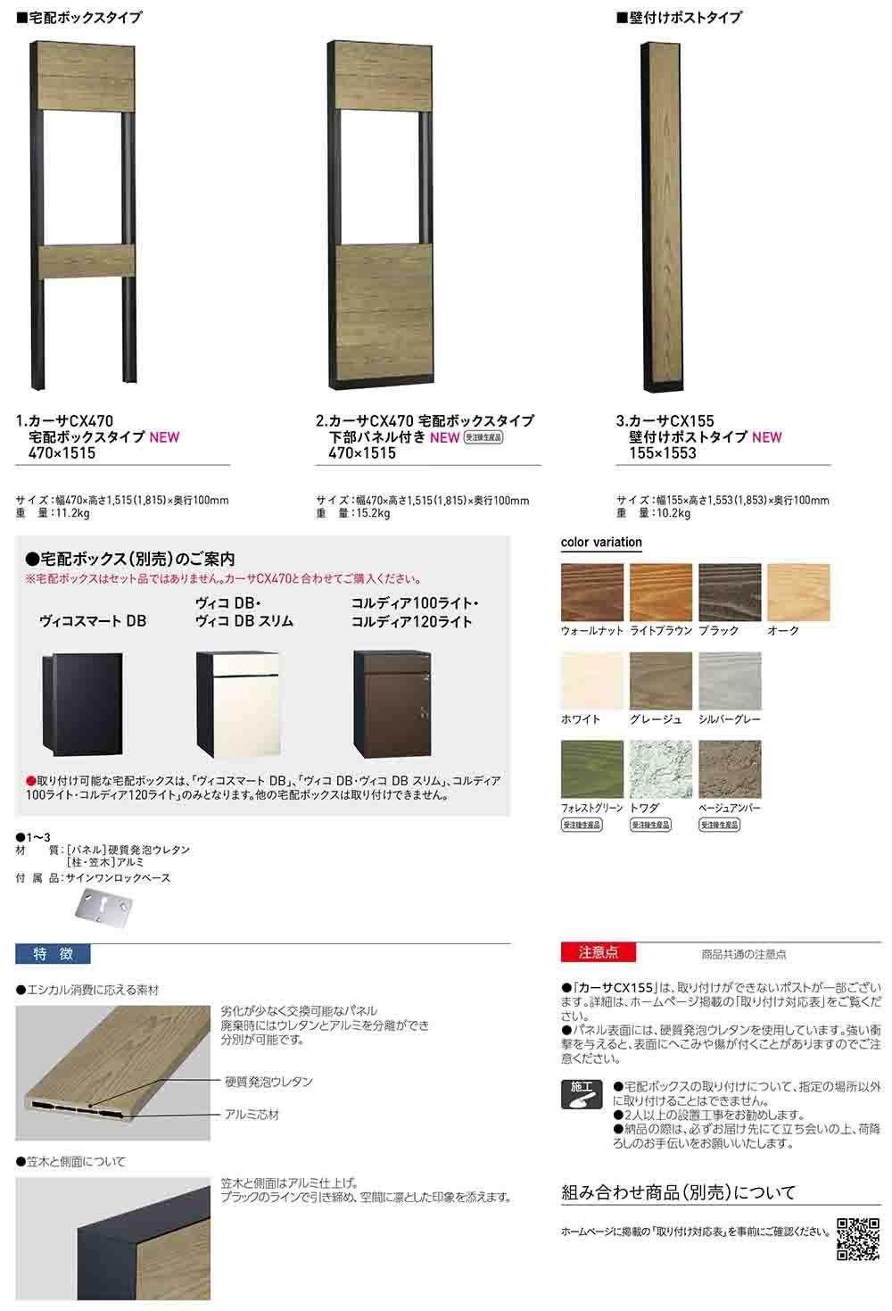 カーサCX155 壁付けポストタイプ ポスト無し(別売)