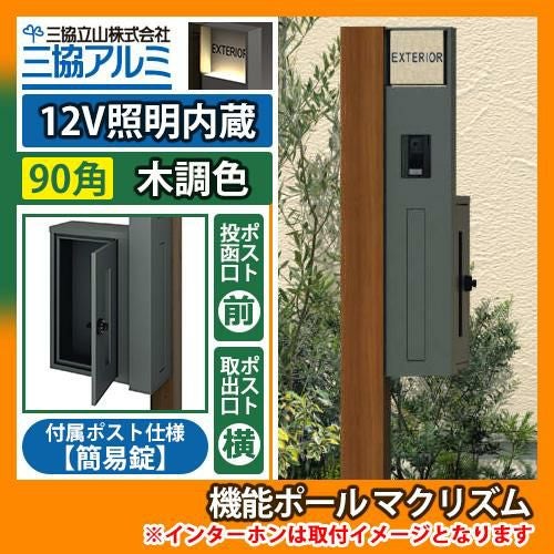 機能門柱 機能ポール マクリズム 12V照明内蔵【90角・木調色】 横出し(簡易錠)セット