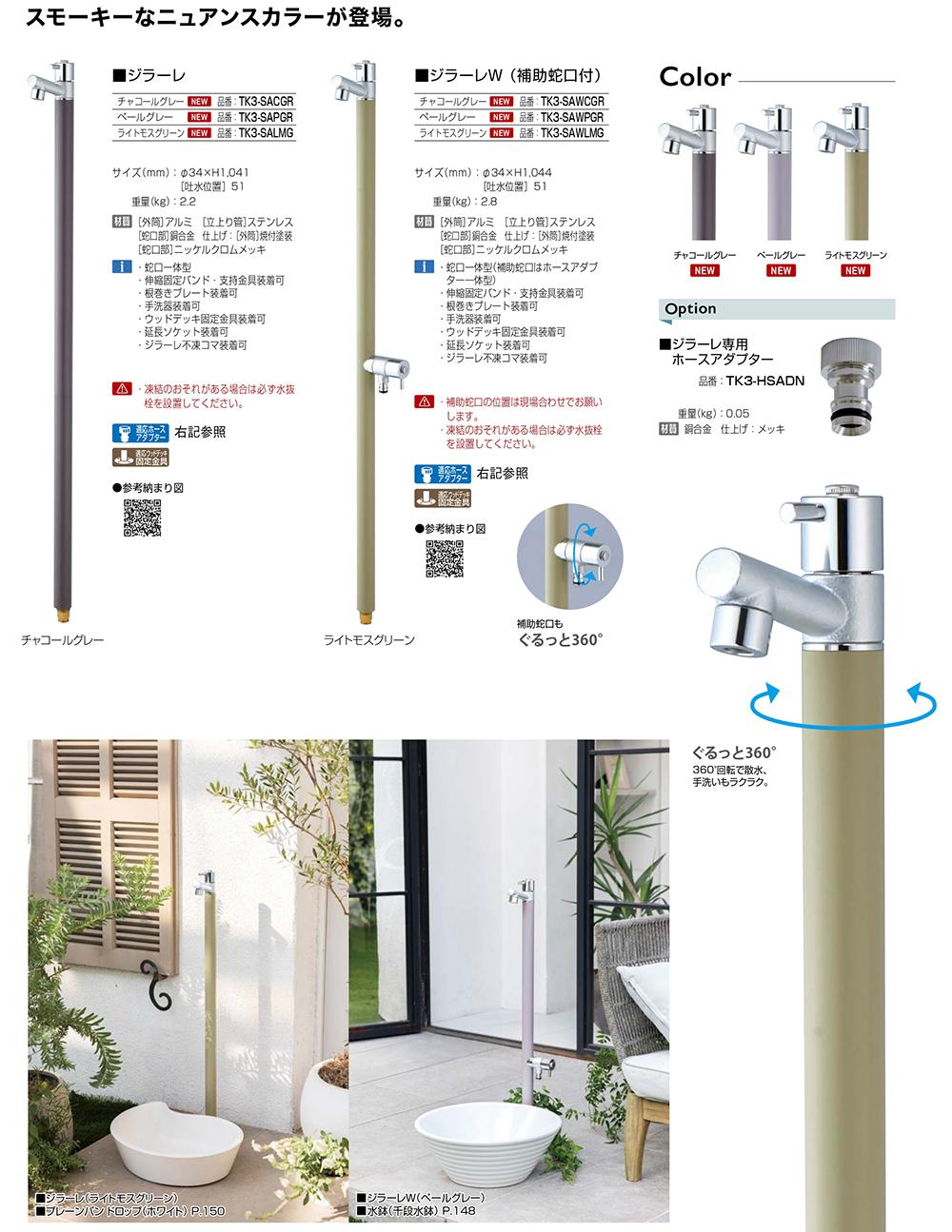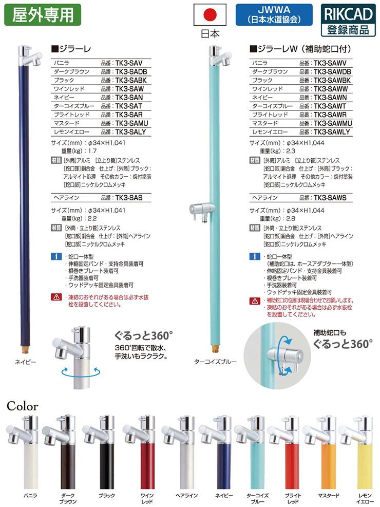 ジラーレ デュエ Type A 一口混合栓 蛇口一体型 全10色 TK3-STA