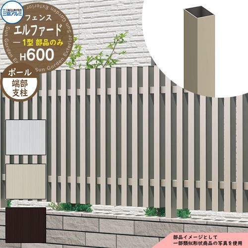 フェンス 三協アルミ 形材フェンス エルファード1型 H600 端部支柱 オプションポールのみ