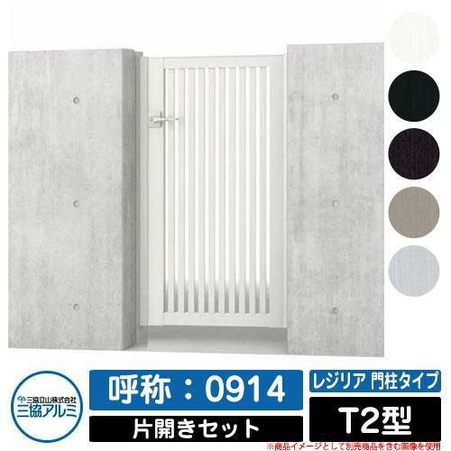 門扉 片開き 形材門扉 レジリア 門柱タイプ T2型 片開きセット(吊元左右兼用) 呼称:0914