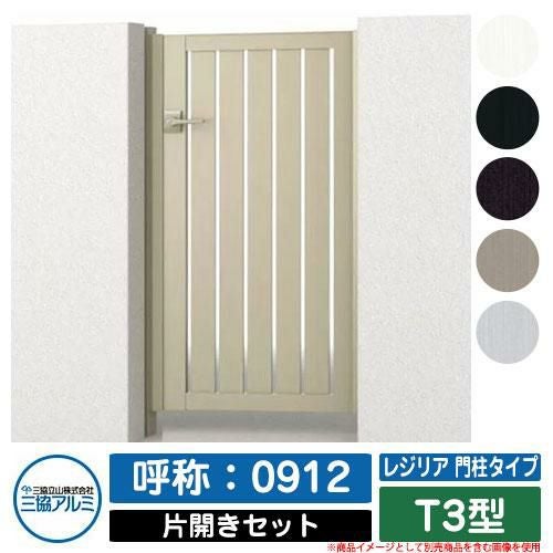 門扉 片開き 形材門扉 レジリア 門柱タイプ T3型 片開きセット(吊元左右兼用) 呼称:0912