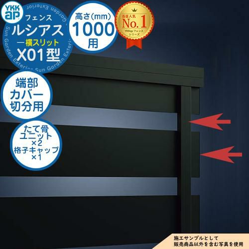 ルシアスフェンスX01型 H1000タイプ(T100) 専用 端部カバー(切分用) たて骨ユニット×2 格子キャップ×1