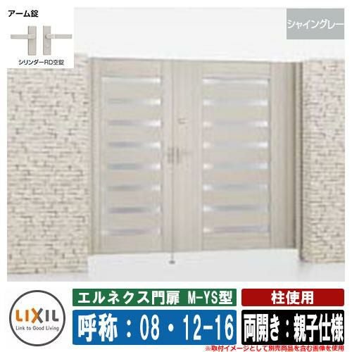 門扉 両開き エルネクス門扉M-YS型 柱使用 シャイングレー 両開き:親子仕様 呼称:08・12-16 寸法:800・1200×1600