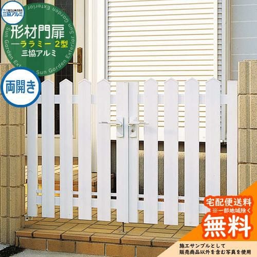 三協アルミ 門扉 ララミー 2型 両開きセット 門柱タイプ 打掛錠仕様 0711 ホワイト W700×H1100(扉1枚寸法)ガーデン DIY 塀 壁 囲い 境界 屋外