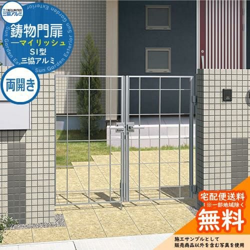 鋳物門扉 三協アルミ 門扉 マイリッシュ S1型 両開きセット 門柱タイプ 0812 内開き施工 打掛錠 W800×H1200(扉1枚寸法)