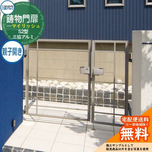 鋳物門扉 三協アルミ 門扉 マイリッシュ S2型 親子開きセット 門柱タイプ 04・0812 内開き施工 打掛錠 W1200×H1200