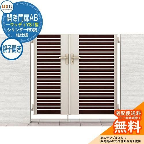 リクシル 開き門扉AB ウッディYS1型 05・07-14 親子開き 柱仕様 W1200×H1400