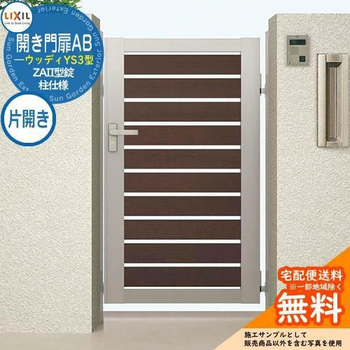 リクシル 開き門扉AB ウッディYS3型 09-10 片開き 柱仕様 W900×H1000(扉1枚寸法)