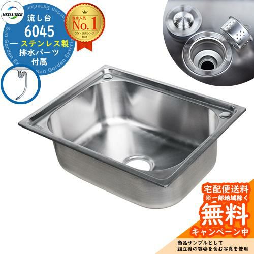 ステンレスシンク ステンレス製 流し台 6045 排水パーツ付き