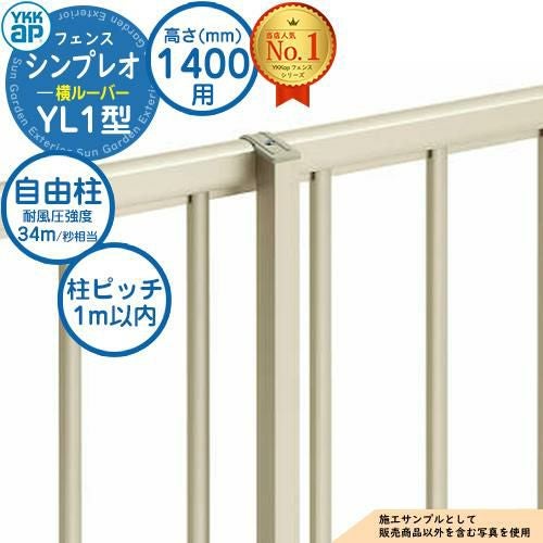 YKKap シンプレオフェンス YL1型 H1400専用 自由柱+胴縁固定金具セット(耐風性能34m/秒相当)※柱ピッチ:1m以内