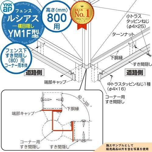 YKKap ルシアスフェンス YM1F型 H800専用 フェンス下すき間隠し(80)用 コーナー用本体