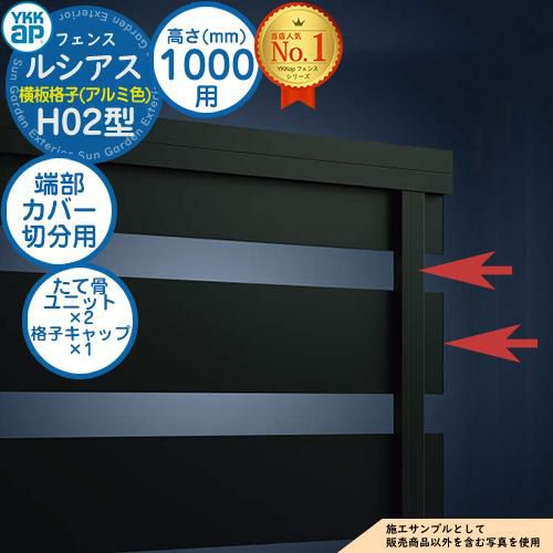 ルシアスフェンスH02型 H1000タイプ(T100) 専用 端部カバー(切分用) アルミカラー たて骨ユニット×2 格子キャップ×1