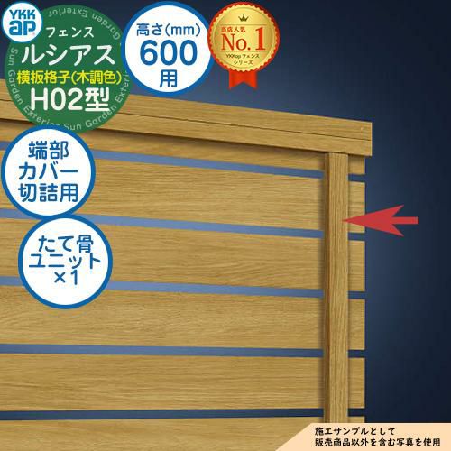 ルシアスフェンスH02型 H600タイプ(T60) 専用 端部カバー(切詰用) 木調カラー たて骨ユニット×1