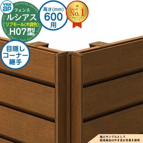 YKKap ルシアスフェンス H07型 H600専用 目隠しコーナー継手:通常用 木調カラー
